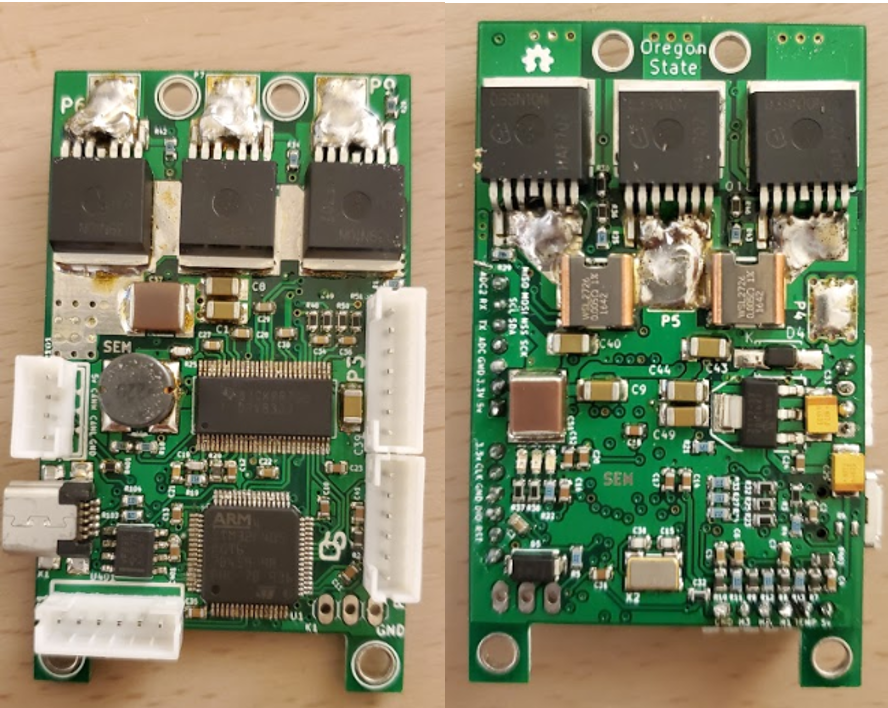 Assembled motor controllers for the Shell Eco Marathon competition. VESC Open Source Project, and compatible with VESC Software by Benjamin Vedder. This motor controller is installed in the vehicle that connedted with the battery, motor, pedal, and when pressing the pedal the signal will be sent to the motor controller to move the motor so the vehicle the move. The motor controller has the ability to do many things a normal RC speed controller can not such as limiting the amount of amps that come from the battery to the motors. An easy way to burn up a motor is by sending it more amps than it can handle for too long (often while riding up a hill). There’s also many other protections that can be set through limits, such as the max temperature you want the vesc to get to (so you can’t burn up the speed controller), min and max input voltage (so you can’t pull the voltage of your battery under a safe limit, which would brick your battery), and max regenerative break amps (protects battery from having too many amps sent back in to it). by setting these limits correctly, the whole system of motor controller going to be protected.