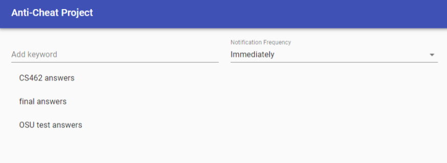 Due to the continuous improvement of the Internet, learning aid websites such as Chegg and Coursehero have appeared. They claim to be a social learning network. Users can access old test questions, assignments, answers, notes, etc. through these sites. Of course, these are not free, users need to pay a certain amount to continue to access the content. However, you can still browse the content by publishing the materials, and the 40 documents will provide users with 1 month of free browsing. This has led to the leakage of teaching content in many schools. The reason why our product is beneficial that not only the content of Oregon State University’s courses has been compromised. On these websites you can find almost all university courses, tests, and answers. Our current work is only for Oregon State University, if the product can achieve the desired effect. The beneficiaries of the product can be more schools. In relation to the scope of the assignment, we should be able to make a basic scraper that can identify websites that contain the course information. Scraping things such as scrape should be quite achievable in the time span that we are provided. Doing things such as scraping images might be a little too ambitious for the time that we have. There also is the question of if we want this to be used as a detector to manually inform that the content needs to be taken down, or are we planning on implementing an automatic system. An automatic system may be out of the scope of the time that we have to complete this assignment. In this project, I was responsible for the back-end part, and I wrote one of the crawlers for the project. In the early stage of the project design, we planned to do the login feature, and I was also responsible for this part, but there was a problem when we tried to integrate with the frontend and backend because Alex used Flask at the frontend, I am not familiar with flash, so the login feature was changed to a simple setting by Alex on the frontend, which does not really have the login feature. At the same time, I was also responsible for the preparation of the API interface, which was written by Cameron and me, and the API interface was called by Alex. For the result part, our initial goal is to send the results to the user's email. Since we did not finish the login feature, we decided to display our search results on the app page. Do you need permission from your teammates and project partner to share certain snippets of code or their intellectual property? - Yes, I think I do need permission from my teammates to share code. How do you distinguish your work from that of the other members of the team? - We only have 3 people in our group. Cameron and I were responsible for the backend, and Alex responsible for the frontend.