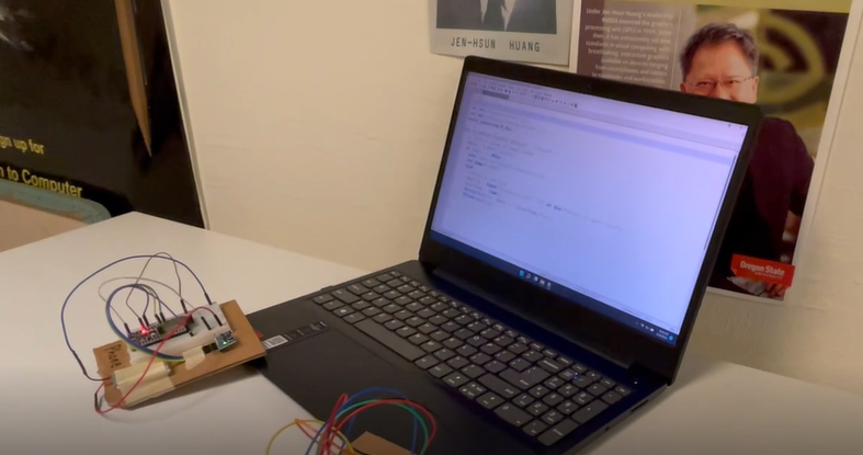 Watch here: https://www.youtube.com/watch?v=g0MhJ_DX2IM&ab_channel=DillonJaspers This is a project using ESP32s and the ENGR web servers. This project has one esp32 use an accelerometer to measure it's position, to determine if it matches a phone call. After this it sends a signal to an OSU webspace. Then another esp32 receives this and displays the number of calls done by blinking an LED that many times