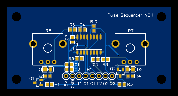 Two uncoupled multivibrators that can be coupled together with other identical boards to make a pulse sequencer of arbitrary length. Meant to be combined with other devboards that fit the 1.25"^2 format.