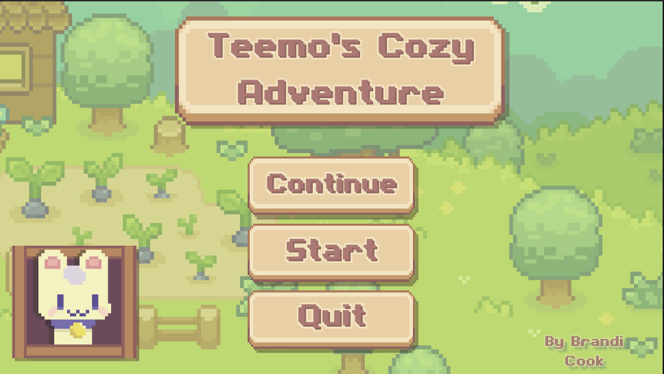 Teemo's Cozy Adventure is a simple 2D RPG game made in Unity using C# scripts. This is a solo project created by Brandi Cook in order to serve as a learning experience, and pave the path to a game development career. This demonstration entails all of the implemented features since the game first began development in October of 2022.