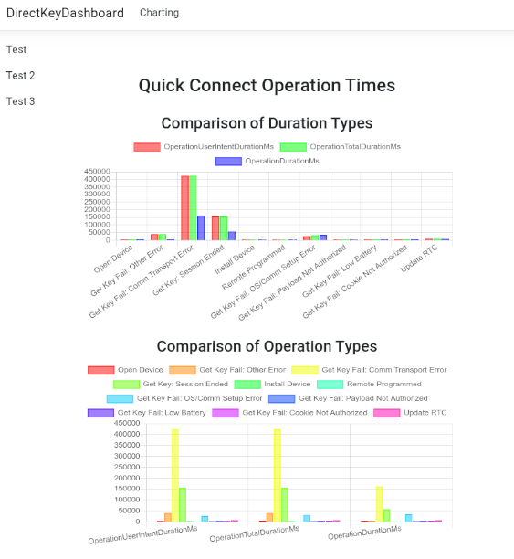 DirectKey is a mobile system used to unlock Bluetooth Low Energy electronic locks. The mobile system collects performance data, such as timeliness in unlocking locks, occurrences of errors, and more. However, there is no clean and intuitive way of visualizing this performance data. Our project is a simple charting application used to query and visualize performance data regarding the DirectKey mobile system. We made use of the ChartJS library for chart projections and ASP.NET MVC for web serving. This project was developed by senior capstone team 21 in the 2019-2020 academic year, composed of team members Alexander Guyer, Eugene Munblit, and Cameron Guillory.