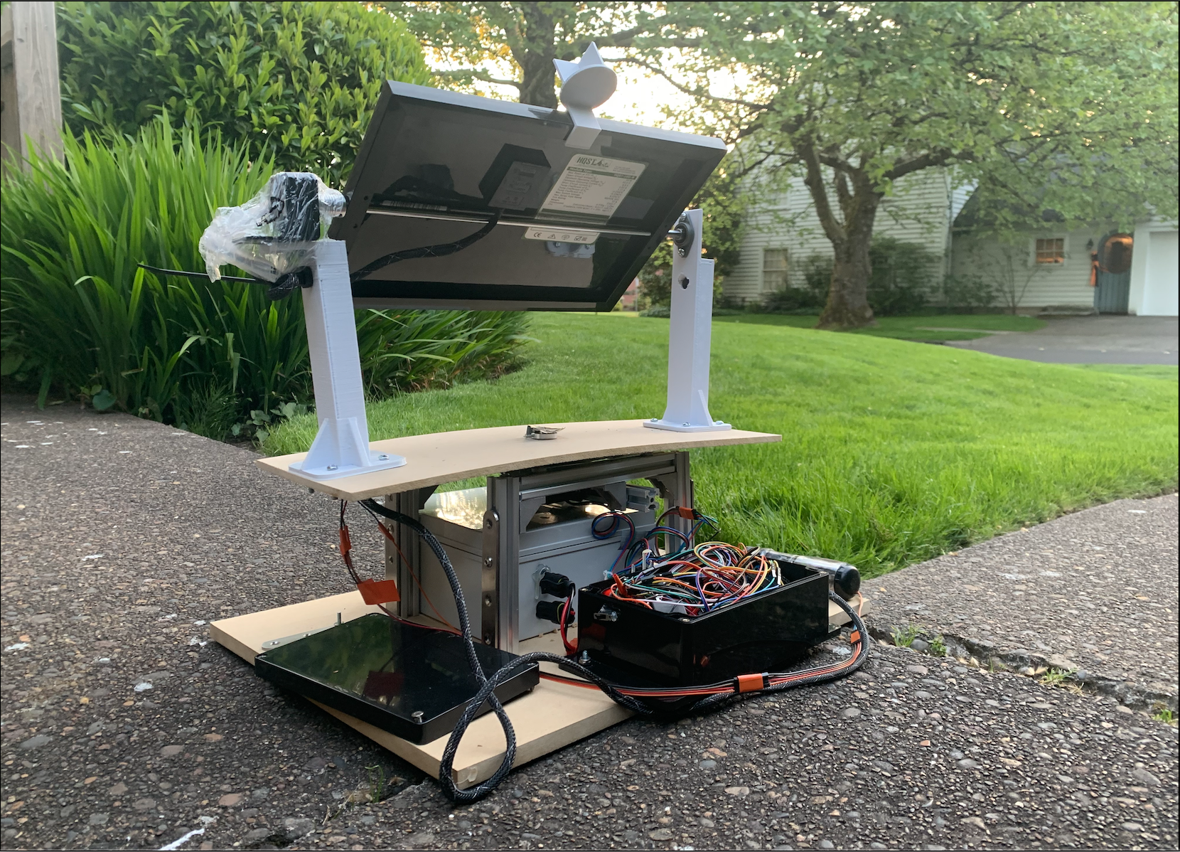 Built a prototype of a portable solar panel with automatic tracking of the sun. The unit has a battery protection system to protect it from overcharging over-discharging and any shorts. It will have methods of adjusting the tilt and rotation of the panel to maintain an orientation perpendicular to the incoming sunlight. The user needs only position the unit so that it generally points south (northern hemisphere), and is level to +/- 15 degrees. The controller uses time, location, and measurement of the panel position parameters to adjust the position of the panel (tilt and rotation) to track the sun within +/- 10 degrees. The system is also waterproof and can withstand between 32F and 100F.