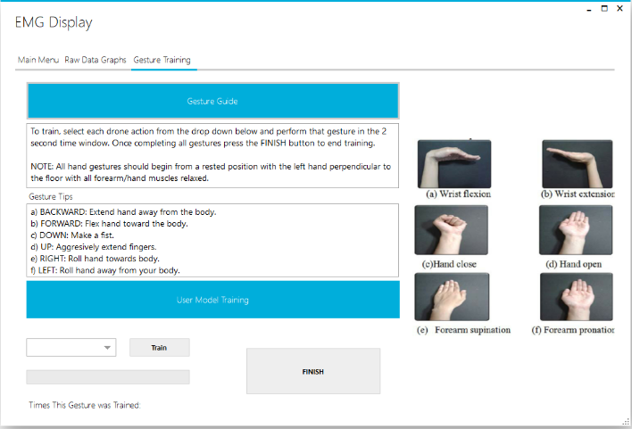 Our goal is to use bio-potential signals from the forearm to control a drone wirelessly. We plan to do this by using OpenBCI hardware and EMG probes to acquire muscular contractions. From there we plan to determine the gesture performed by deep learning. After the gesture is found, the result will be shown to the user and ultimately sent to the drone as a controlling command.