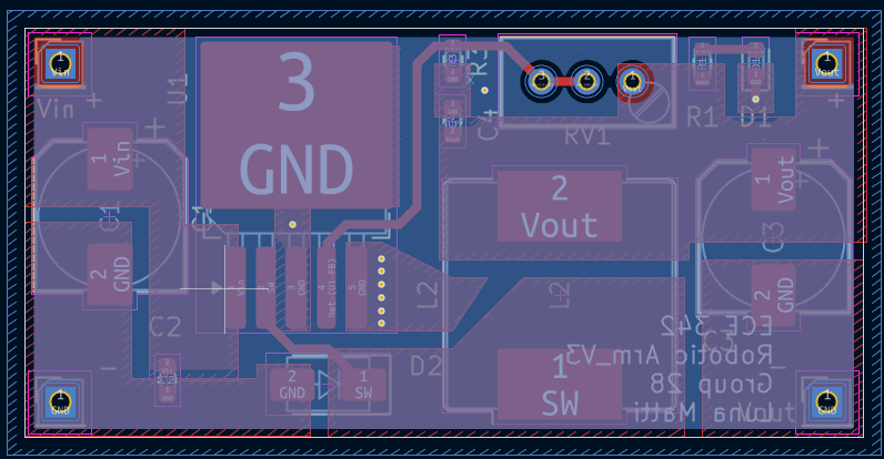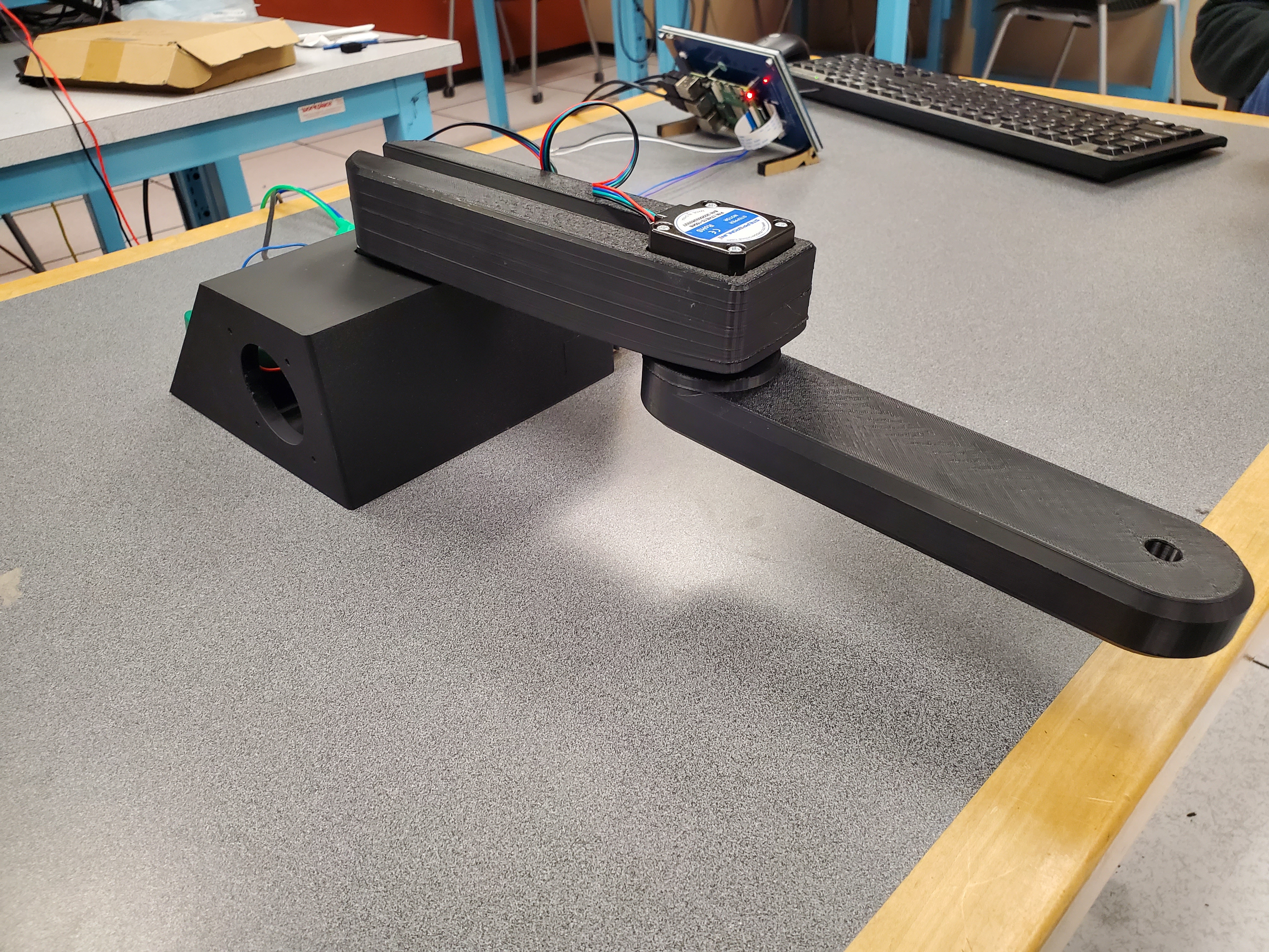The goal of the project is to create a 2-axis robotic arm that is capable of performing certain repetitive tasks in the SCARA topology, where the movement is parallel to the ground plane. Given that many manufacturing processes today operate through robotic movement, the SCARA topology can be tremendously applicable across various industries. The movements made possible by the 2 rotating joints, later referred to as the shoulder and elbow joints, mimics movement of the human arm and can support in reducing wait times in repetitive tasks along assembly lines. The system utilizes a Raspberry Pi for the display and computing power of the machine with a connected ESP-32 to communicate with the motors. The Raspberry Pi also takes input from the user interface through a touchscreen that the GUI is displayed on. Additionally, given high power consumption in the implemented technologies and DC to DC buck converter is employed to bring the voltage down to 5 V from the 12 V DC that’s supplied to the whole system and motors. A challenge we faced during development was the power consumption of the product. Various components implemented in the design can take in high amounts of power for example, the motors can handle anywhere from 8 V to 48 V with 1.5 Amps per phase and the Raspberry Pi needs a nominal current of 2.5 Amps for stable connection. In the initial step various LDO schematics were implemented to convert the voltage down with necessary current specifications, however, if current reflection occurs at any point with LDO designs it may result in unreliable power supplies and lead to power surges. As a result, a solution we implemented was the use of a DC to DC buck converter to remove risks of power surging. A notable accomplishment was employing the communication between the Raspberry Pi and the ESP-32. Since there were initial issues with clock timing of the two components and the exceeded output voltage of 3.5 V off of the Raspberry Pi it was very gratifying to find solutions to drop down the voltage see the working communication to the motor drivers.