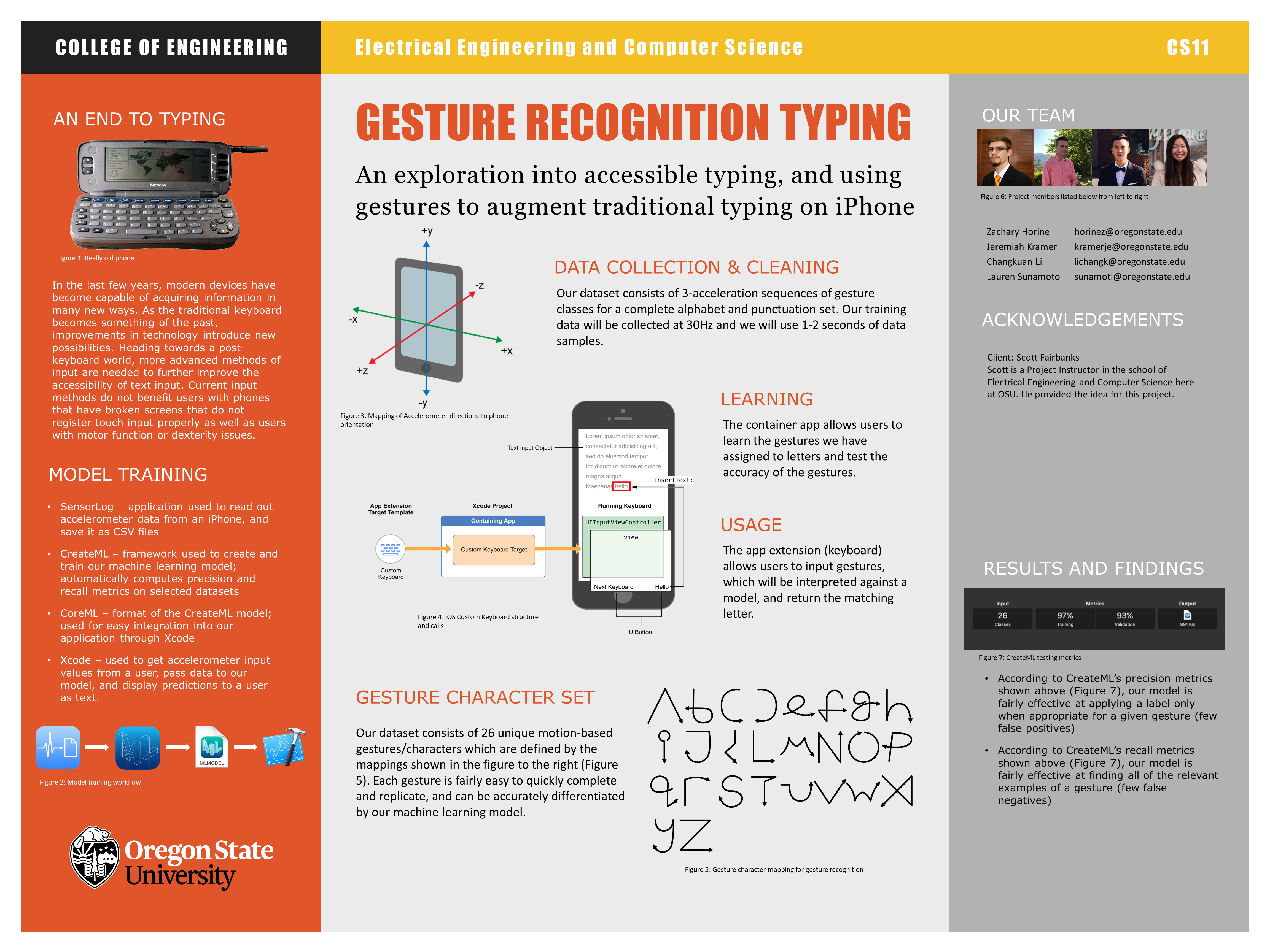 For our senior capstone project we designed a custom iOS keyboard that allows the user to input text using motion gestures. We designed a custom character set of 26 unique gestures that can be used to type anything!