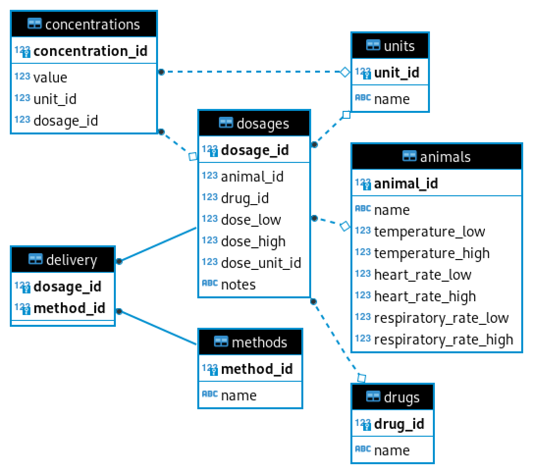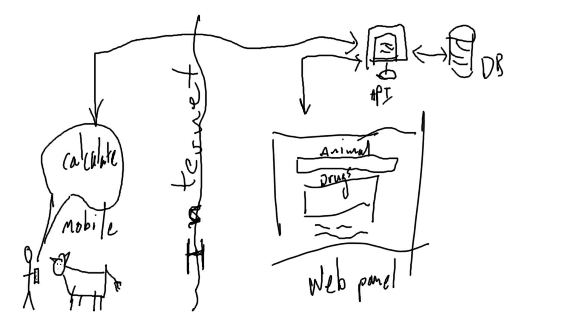 The Veterinary Drug Calculator is a combination of four separate components to deliver a product that works for a variety of target audiences. The purpose of the project is to calculate an appropriate dosage of drug to given to a specific animal of a certain weight. The same drug will have different dosage requirements based on the animal species, and the available concentration of the drug. Some goals of the project are to have: - A simple user interface and experience for calculating and updating drugs. - Accurate drug information that is easy to edit and audit for accuracy - A calculator mobile app that can be used anywhere there is internet. The four parts of the project are as follows: (1) the PostgreSQL database containing the animal and drug data. (2) the Express.js application server to interface between the Database and frontends (3) the React-based web panel for an administrator to view and modify the database without needing to understand SQL or HTTP requests (4) the Flutter-based mobile app that holds the calculator for calculating drug dosages retrieved from (2). Flutter enables Android and iOS application bundles. (1) and (2) go together to form the backend. (3) and (4) are frontends that hook into the backend depending on the target audience. A normal user would only use (4), but an administrator would also need (3). One reason a database such as Postgres was chosen was because of the need to share data between (3) and (4). A typical user would just need a calculator that has the drug and animal information needed for the calculator to work. This calculator is envisioned as a mobile app available for Android or iOS. The drug information, however, is subject to change as new drugs are added over time, or the recommended dosage for a particular animal changes. Therefore, the drug data needs to be modifiable. This is why a web-based administrator panel is available to modify the drug information. The drug information is stored in relational database following a schema designed to minimize repetition of data and make editing the relations between data simple. The database is exposed to the mobile app and web app through an OpenAPI scheme.