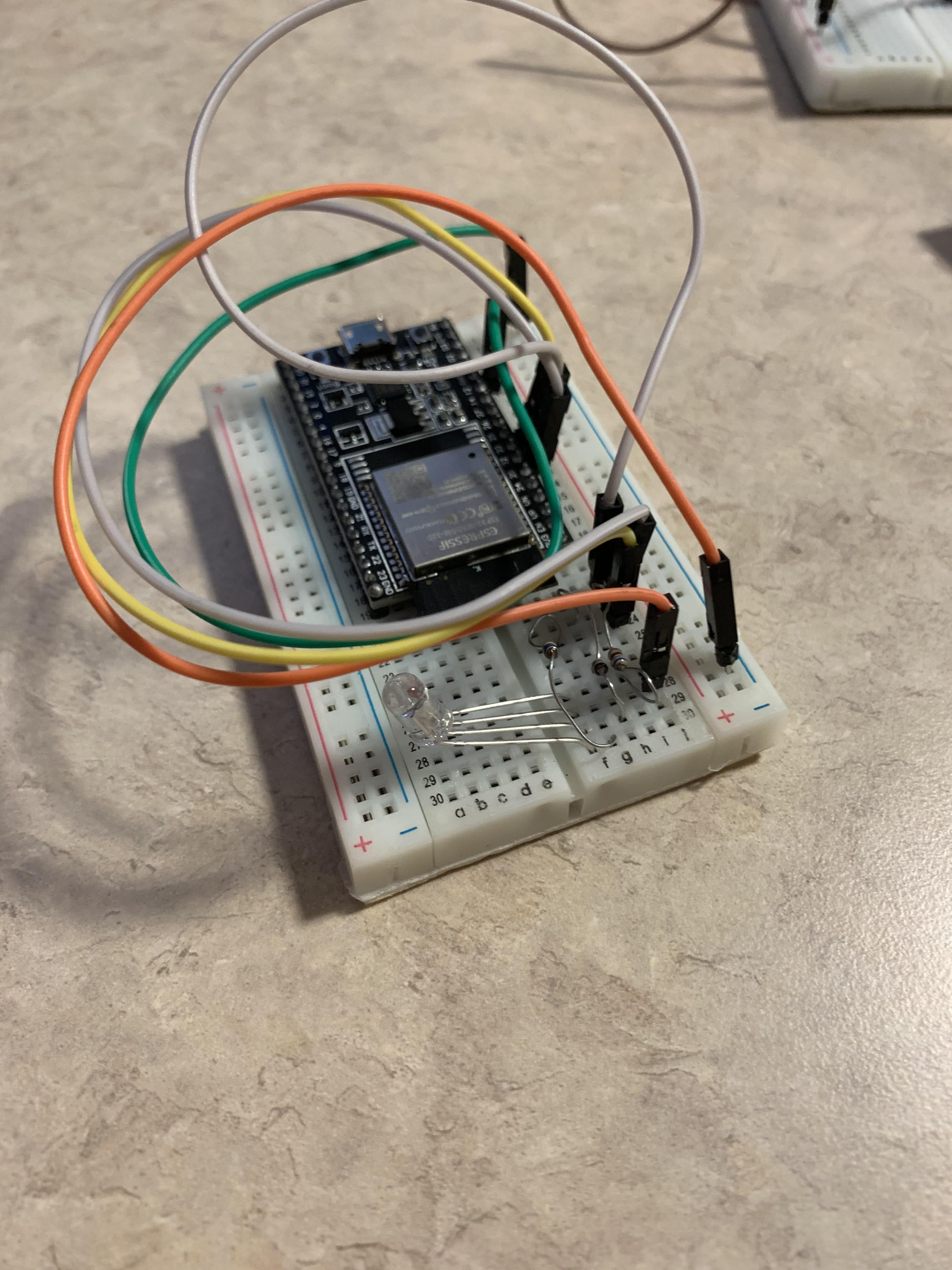 In this project me and my partner utilized an ultrasonic sensor, LED lights, 2 ESP32 arduinos, and a web page page to detect whether a person was in front of the ultrasonic sensor and how far the person was from the sensor. The sensor ran off of one ardunio and posted the persons distance to a webpage. Then the second arduino would read this distance and depending on the distance the lights would flash one of three colors. Red meant the person was closer than 50cm to the sensor, Blue meant the person was between 51cm and 150cm to the sensor and Green meant the person was farther than 150cm from the sensor. This data was also reflected in the serial output.