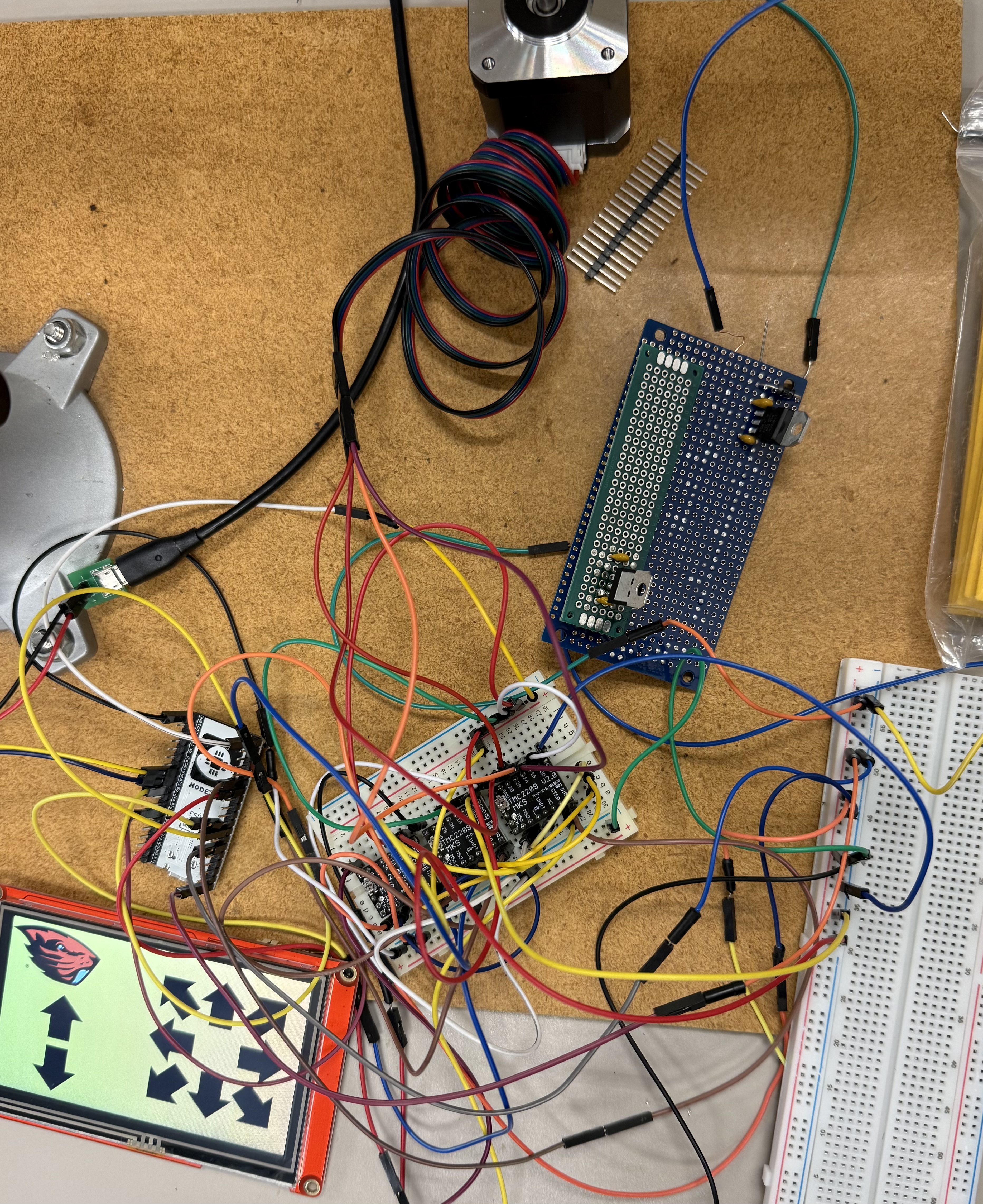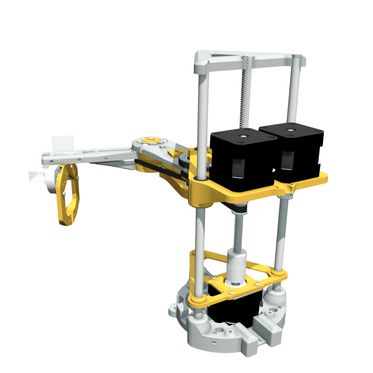The Two-Axis SCARA Robotic Drawing Arm is designed to convert user drawing commands into controlled mechanical motion of a robotic arm. The system receives commands from a user interface, processes them using an embedded controller, and drives stepper motors that move the robotic arm along two rotational axes. This allows the system to draw lines and shapes with controlled speed and positional accuracy. The system demonstrates how embedded electronics and mechanical systems can be integrated to perform automated drawing tasks. Key technologies used in the design include an ESP32 microcontroller for motion control, TMC2209 stepper motor drivers for precise actuation, and NEMA-17 stepper motors to generate arm movement. A regulated power distribution system supplies stable power to the control electronics and motor drivers, while an LCD-based interface allows users to input commands. One of the main accomplishments of this project was successfully designing the system's power distribution so that the controller, drivers, and motors could operate reliably together. A challenge during the project was keeping the documentation aligned with the evolving design, since changes to the top-level architecture required updates across multiple documents.