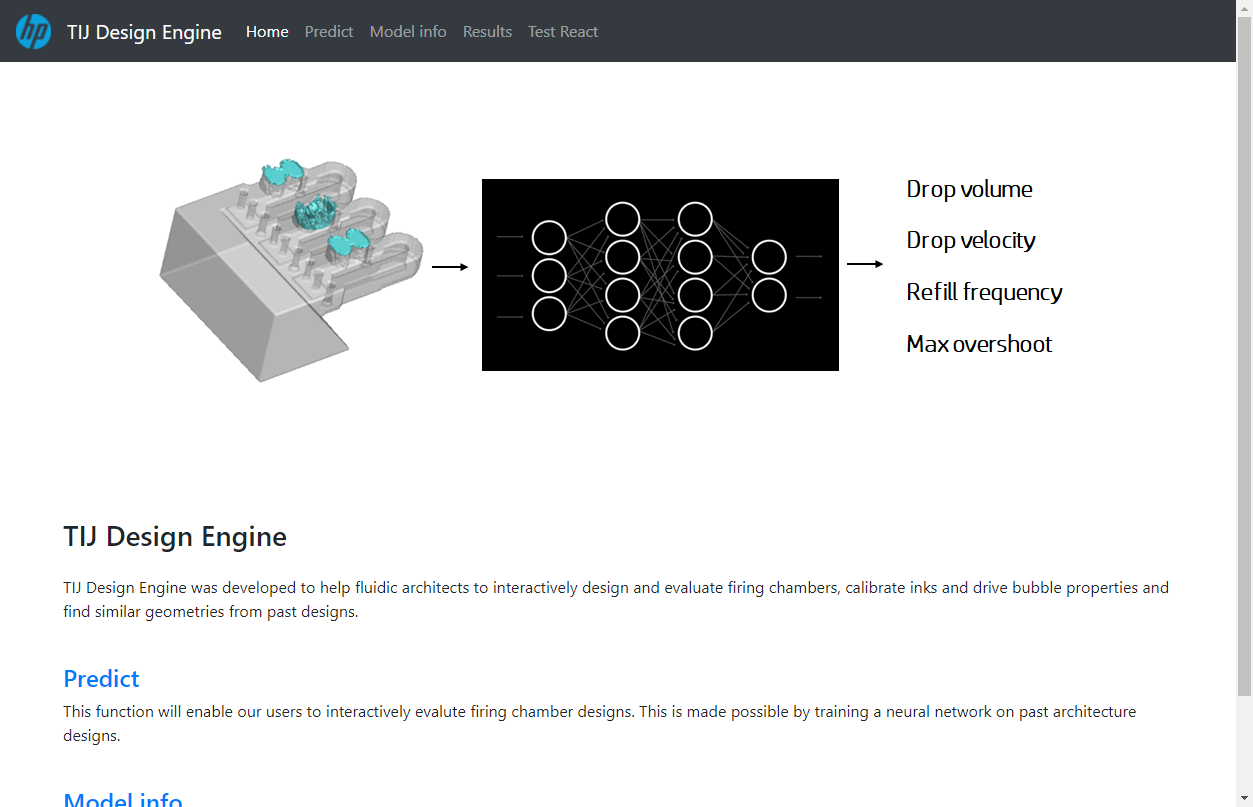 This project describes the design components of the HP sponsored AI Based Microfluidic Design Automation Web application. The objective of the AI base web app is to create an user interface for the user to get control of the input and output. The web app will collect the geometry input from the user. A machine learning algorithm will be developed and it will adopt the input to make a rapid prediction on the thermal inkjet performance.