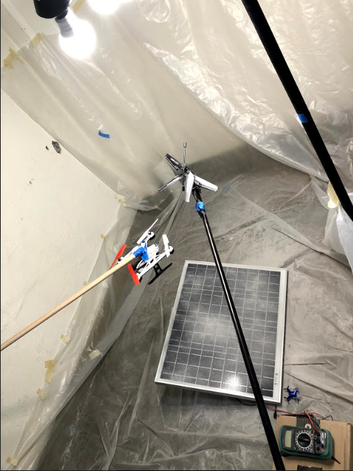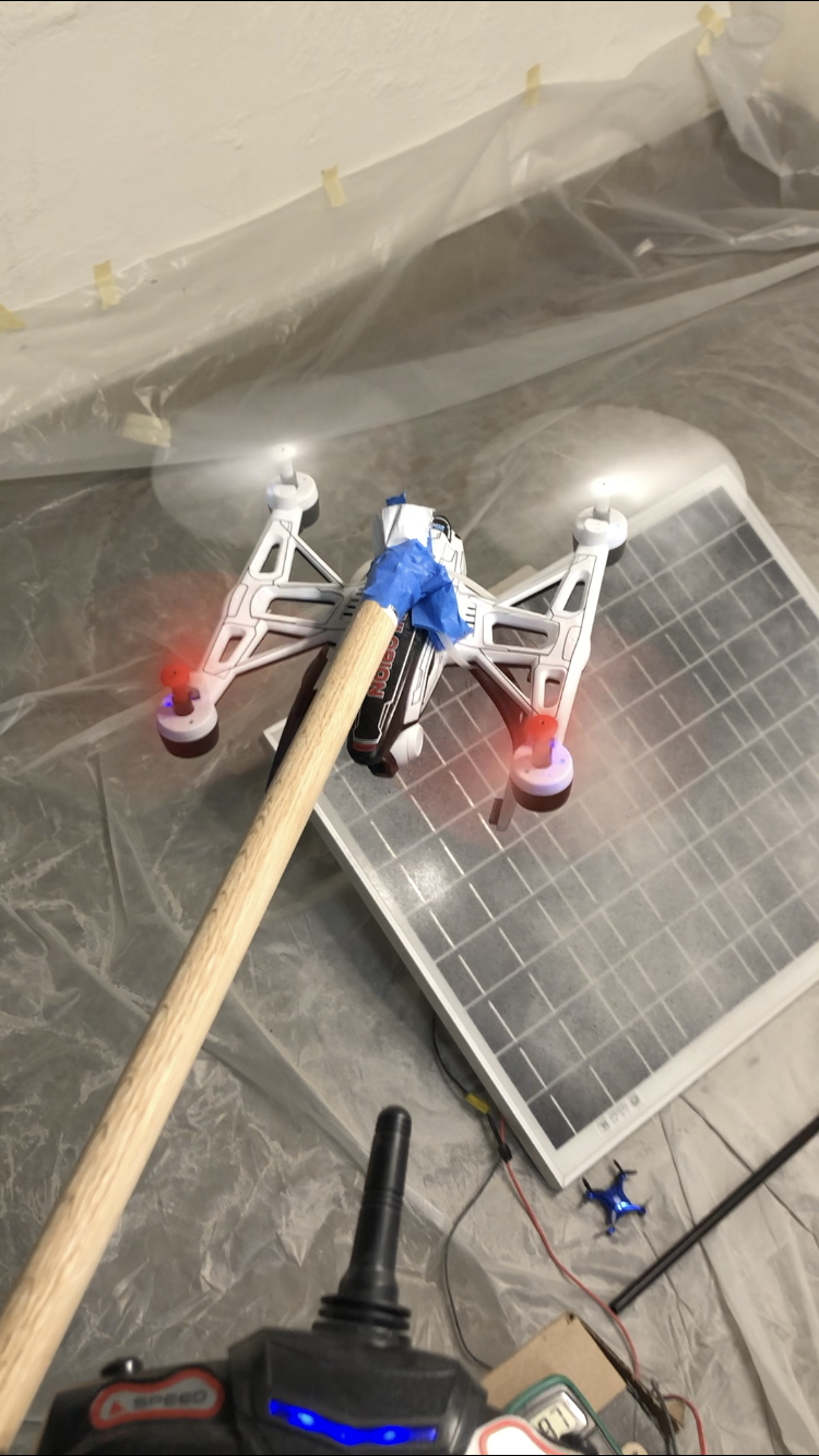 Solar panels accumulate a variety of debris that can decrease output by several percents. On something as big as a solar farm if every solar panel is dampened by a few percents there will be a huge loss in overall power output. This project will determine whether a solar panel can be cleaned via drone rotor washing and how effective it will be against different types of debris. Rotor washing is the air pressure exerted from the drone's blades when it's flying.