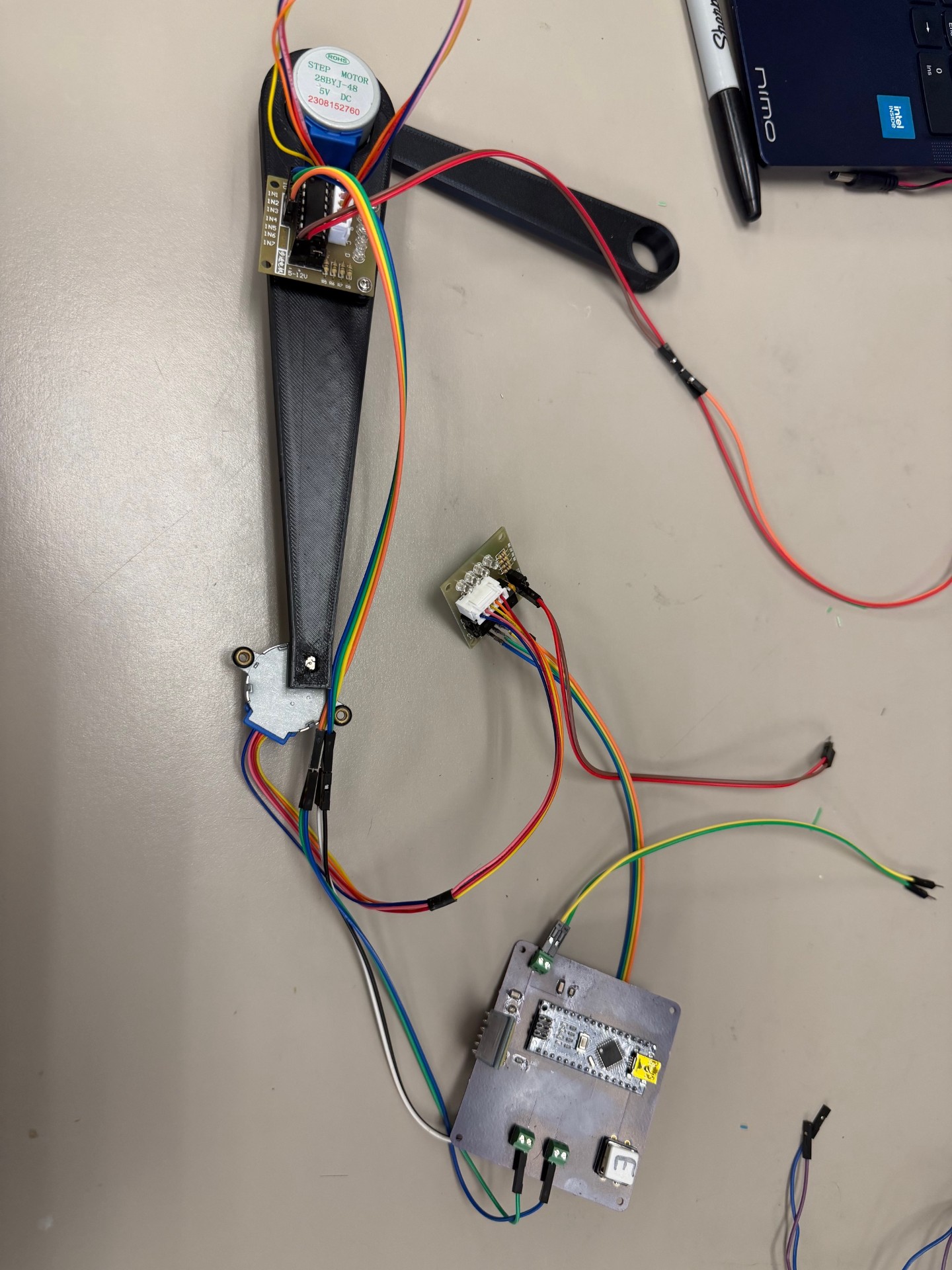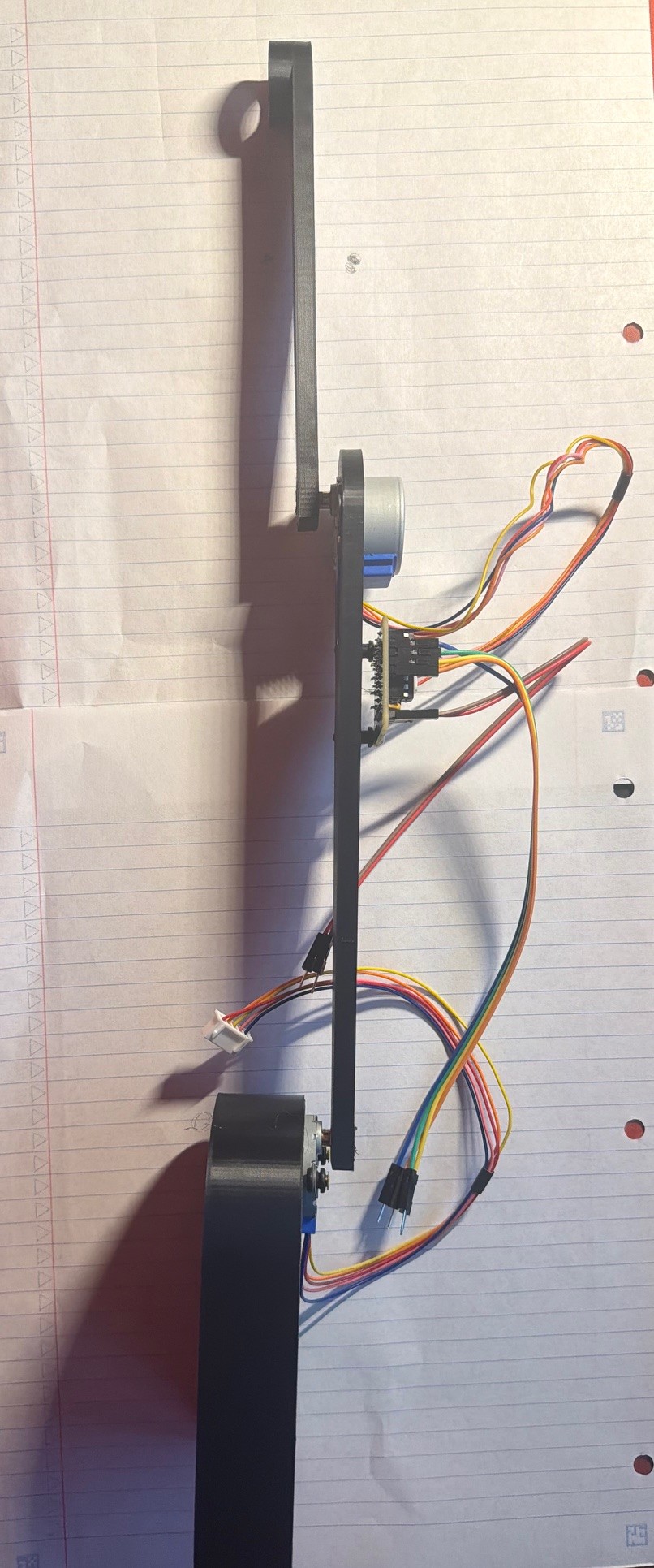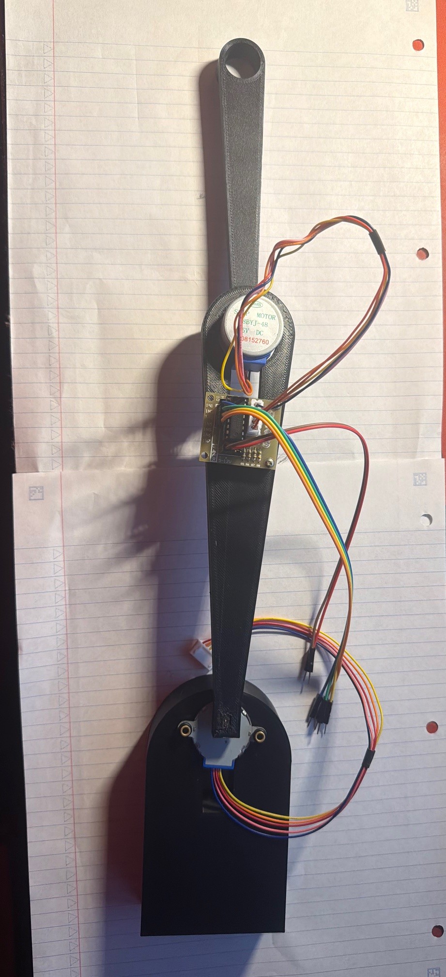 This project presents a remotely controlled two-axis SCARA robotic arm designed to draw shapes and lines based on user input. The system allows a user to control the robotic arm either through directional controls on a handheld remote or by sending G-code instructions that the arm executes sequentially. The goal of the project is to demonstrate a complete embedded control system that converts user commands into precise mechanical motion. The system integrates multiple hardware and communication technologies. An Arduino-based microcontroller system processes commands transmitted wirelessly using HC-05 Bluetooth modules. The robotic arm is actuated by two 28BYJ-48 stepper motors controlled by a stepper library and stepper driver. A voltage regulation circuit using an NCP1117 linear regulator provides stable power to the electronics, while a display interface provides real-time information such as system status and arm position. One of the main accomplishments of the project was successfully integrating wireless communication, motor control, and power regulation into a cohesive system capable of precise motion control. Challenges included ensuring reliable Bluetooth communication, managing current requirements for the motors, and coordinating subsystem interfaces. Future improvements could include implementing inverse kinematics for more complex motion paths and improving mechanical precision.