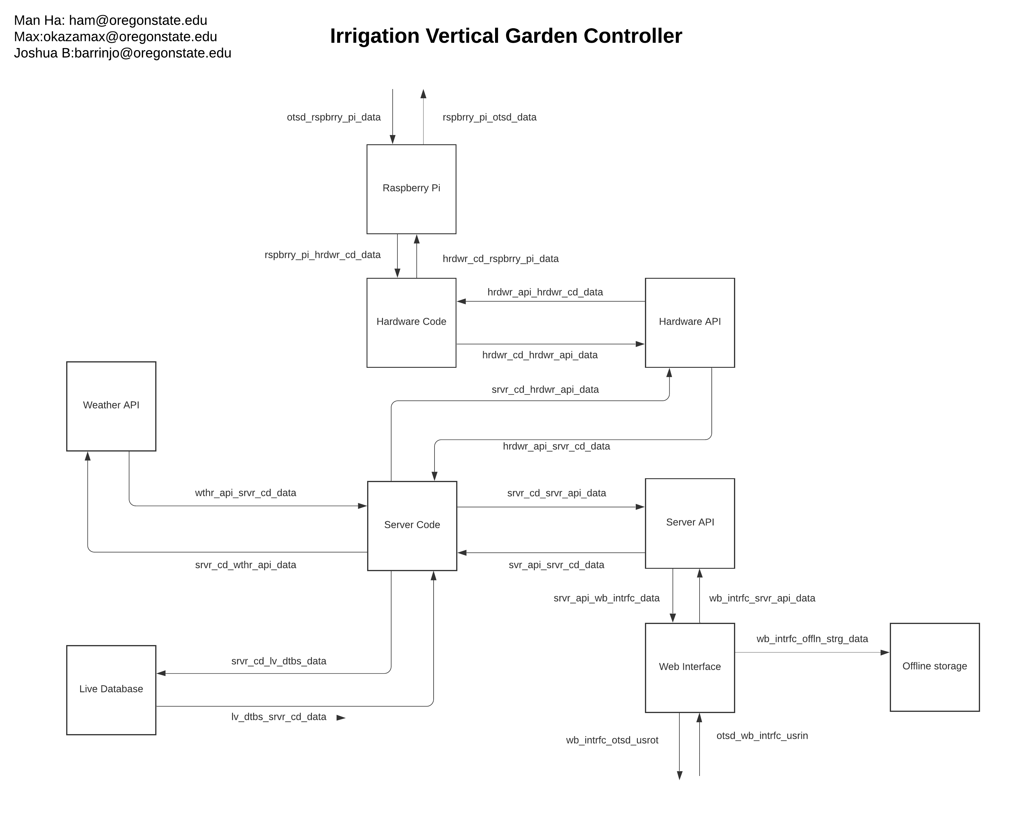 The Irrigation Vertical Controller capstone project's purpose is to find a cost-effective way to monitor and water the garden through the mobile device. We also aim to make an effective watering system using a scheduling system that utilizes weather information from the microcontroller. A plant will not grow well if it experiences scarcity or excess water, which is worse if we were to add nutrients into the water. Commercial sensors are very costly for this purpose, making it difficult for the gardener to incorporate this kind of device into their gardens. However, multiple low-cost sensors can be attached to nodes to introduce low-cost irrigation control and agricultural monitoring systems. This project finds the best solution to find the most sufficient and cost-effective smart irrigation system that satisfies the top basic need for a smart garden with minimal power, size, and monetary cost. By combining the ability to use Application Programming Interface (API) from the raspberry PI with decent computation ability, we can get the current weather information in real-time along with storing historical sensor data on the database. The strongest point is the ability for Raspberry Pi to connect to the internet to get data from computers and even act as a server of its own (Flask). All this information can be used to control water output and nutrient values, lightning option. As the Raspberry Pi is connected to the Internet, we can use a large database of a plant to personalize each irrigation system for each plant. The project is being set up using the Flask framework, we can bring different functionality through (general purpose input/output) GPIO, which is a python module to connect different physical hardware accessories such as temperature, humidity, and ph. Sensor and display all of them on the web.
