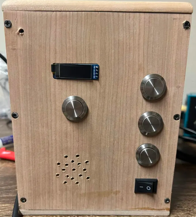 Our teams Wooden Custom Detection Timer is an embedded system designed to function as an interactive countdown timer that detects the presence of an object placed on the device and responds when that object is removed. The system allows users to select preset countdown durations such as 5 minutes or 10 minutes and displays the remaining time during operation. When the detected object is removed before the timer completes, the system immediately stops the countdown and triggers an audible alarm to alert the user. This type of system could be used for productivity tasks, object monitoring, or timing applications where interaction with a physical object is required. The design integrates several key technologies including an ESP32 microcontroller, a load-based weight sensor for object detection, pushbutton user inputs for manual control, a digital display for time visualization, and a piezoelectric buzzer for audible alerts. The ESP32 serves as the central controller that processes sensor input, tracks elapsed time, and generates the required output signals to other subsystems. Power for the system is provided through a regulated 5 V supply generated by a DC-DC voltage regulator from the battery input. One of the most notable accomplishments of the project was successfully integrating multiple hardware blocks into a cohesive embedded system that meets strict engineering requirements such as a ±1 second response accuracy and a buzzer tone of 440 Hz ±1 Hz. The primary challenges involved validating electrical interfaces between modules, ensuring reliable sensor detection, and coordinating firmware with hardware timing behavior. Future improvements could include improving sensor filtering, adding more advanced alarm patterns, and refining the mechanical enclosure design to enhance usability and durability.