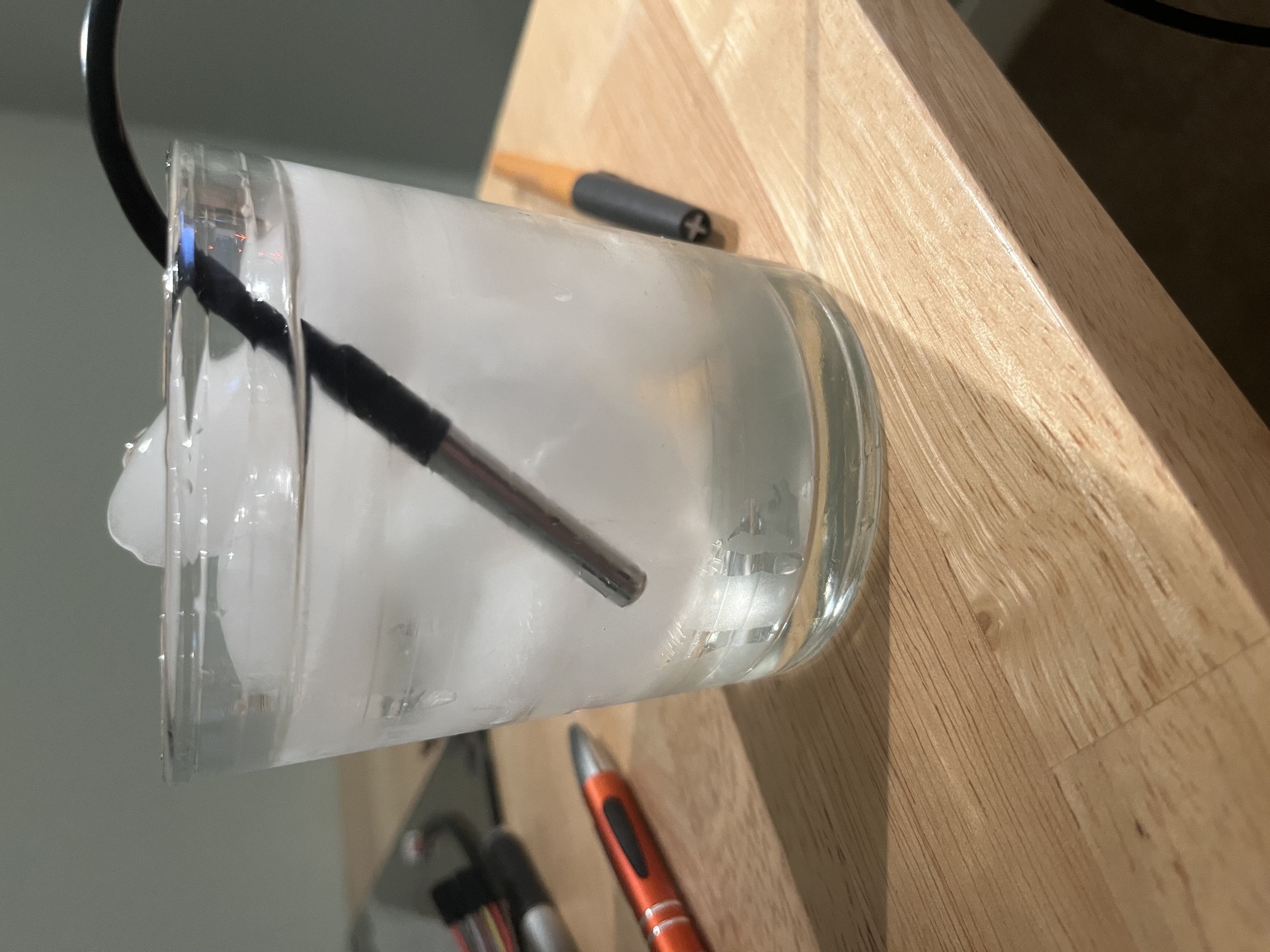 My project focused on collecting temperature data from a glass of ice water. To accomplish this I utilized the ESP32 micro-controller and DS18B20 waterproof temperature sensor to collect data. As expected, I saw a warming trend in the glass of ice water over the 24 hour time period. I witnessed the glass of ice water slowly warm to the ambient room temperature and stabilize. To program the micro-controller I used Arduino IDE. Through research and testing, I created my own Arduino code which prints live temperature on the serial monitor. When the prompt, "Print report," is entered in the interaction box and sent, the program will print the applicable report of min/max, 10 minute average, and overall average. We can then use this data to create visual graphs and study inflowing energy to the water, heating it until equilibrium is met with the ambient air temperature in the room.