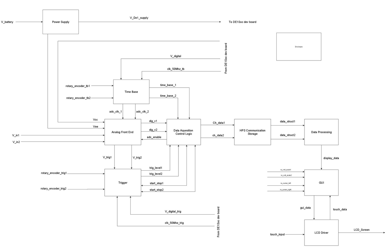 After building a USB Oscilloscope for my Junior Design Project, Intel contacted my partner and I through their FPGA Academic Program to offer their sponsorship. Leah Lindblom from Intel's Product Marketing Department in San Jose currently serves as our client for our Senior Design Project, a Digital Storage Oscilloscope. The main goal is to increase the sampling rate from 1 Msps to 10 Msps and output to an LCD touch screen connected to the DE1-SoC Development Board.